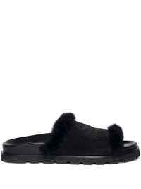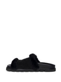 Teddy Bare sandals Highlights - Black - Leather upper - Shearling trim - Open toe - Flat sole - Embroidered detail Imported Composition Lining: Sheep Skin/Shearling 100% Outer: Calf Leather 100% Sole: Rubber 100%