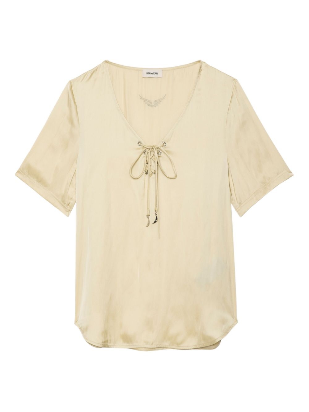 Terzo lace-up short-sleeved top Highlights - Beige - Short sleeves - Lace-up front - V-neck Imported Composition Recycled Polyester 100% Washing instructions Read Manufacturer Guidelines