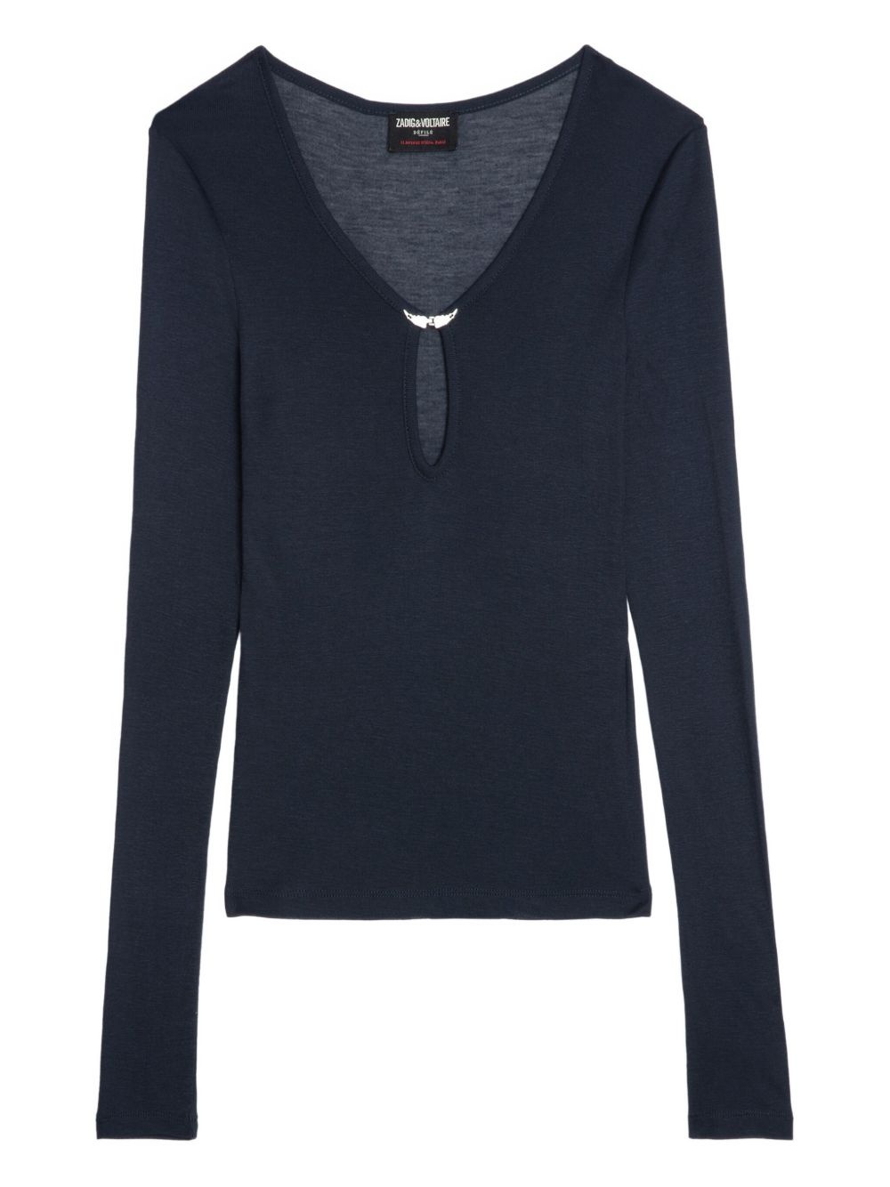 Tina T-shirt Highlights - Navy blue - Keyhole neck - Long sleeves - Logo plaque - Straight hem Imported Composition Modal 100%