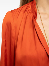 Tink satin blouse Highlights - Orange - V-neck - Long sleeves - Buttoned cuffs - Ruched details Imported Composition Recycled Polyester 57%, Polyester 43% Washing instructions Hand Wash