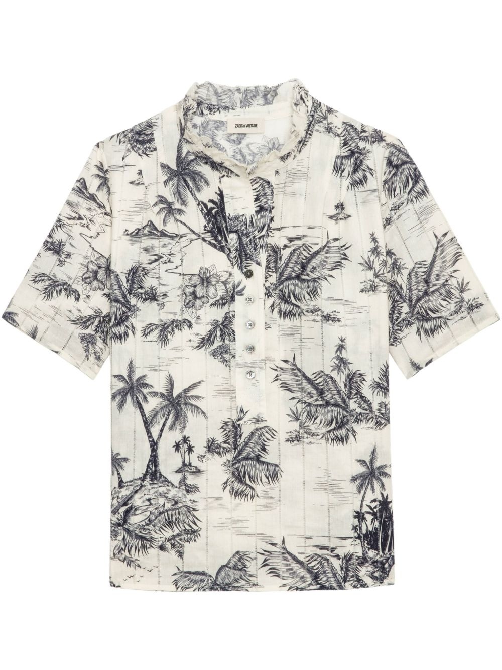 Topher shirt Highlights - White - Front button fastening - Ruffle collar - All-over graphic print - Rear curved hem Imported Composition Organic Cotton 100%