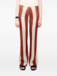 tricot-knit trousers Highlights - Dark red - Elasticated waistband - Perforated design - Vertical stripe print Imported Composition Cotton 100%