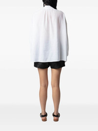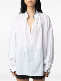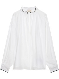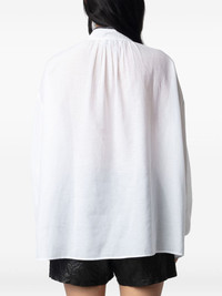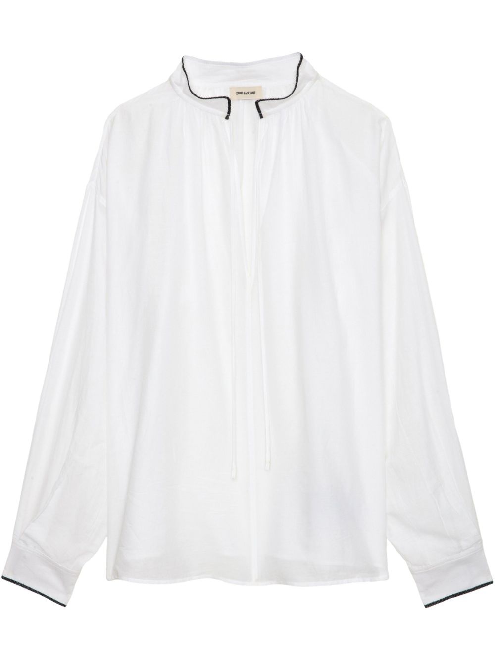 Troene shirt Highlights - White - V-neck - Gathered tie neck - Poet sleeves - Contrasting trim Imported Composition Organic Cotton 75%, Viscose 25%