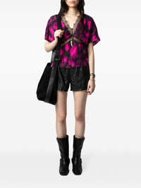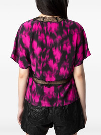 Tzar blouse Highlights - Black/hot pink - Silk - All-over graphic print - Lace trim - V-neck - Short sleeves - Straight hem Imported Composition Silk 100%