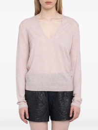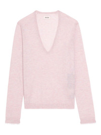 V-neck knitted jumper Highlights - Pastel pink - Long sleeves - Ribbed cuffs - Deep v-neck Imported Composition Cashmere 100%