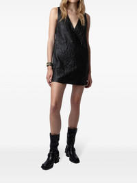 V-neck leather minidress
