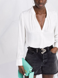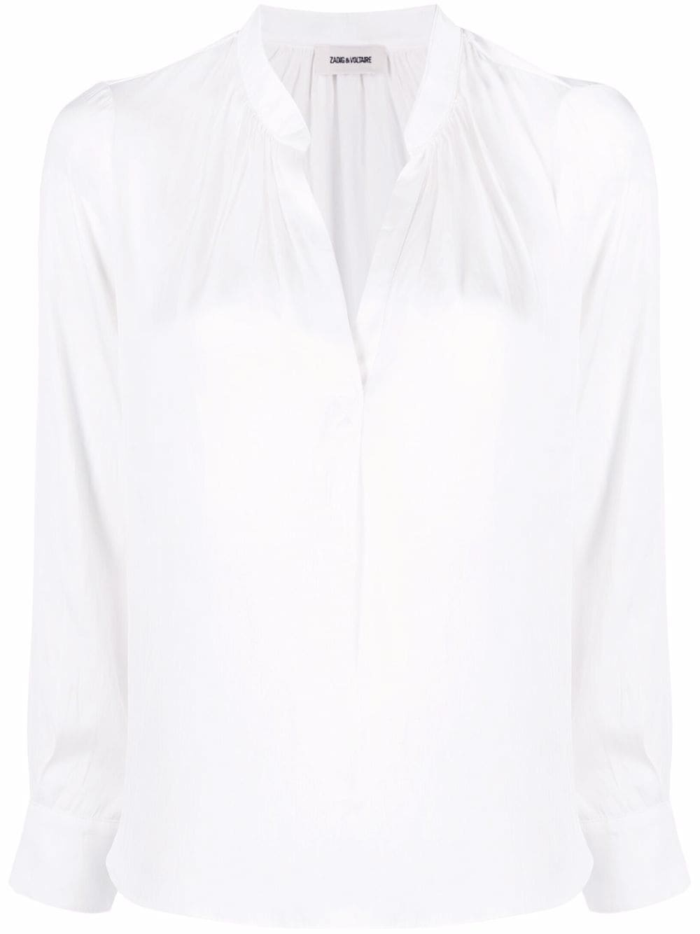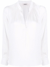 Tink tunic blouse Crafted from a lightweight material with a satin finish, this delicate blouse from Zadig&Voltaire boasts subtle pleats, complementing its lustrous construction. Highlights - White - Pleat detailing - Satin finish - V-neck - Collarless - Long puff sleeves - Buttoned cuffs - Curved hem Imported Composition Polyester 100% SIZE & FIT Model measurements Height 5 ft 10 in(1.77 m) Bust/Chest 32.28 in(82 cm) Hips 35.03 in(89 cm) Waist 25.19 in(64 cm) FittingInformation This piece fits true to size. We recommend you get your regular size Cut for a loose fit Made with a lightweight non-stretch fabric Washing instructions Hand Wash