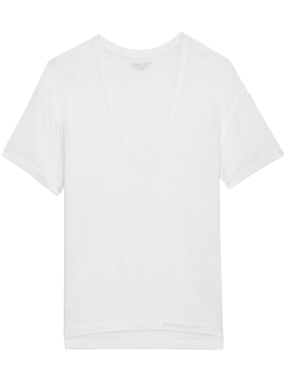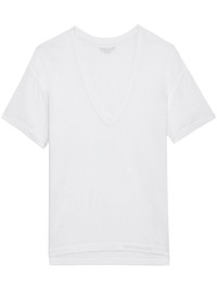 V-neck T-shirt Highlights - White - Short sleeves - Straight hem - Rhinestone embellishment Imported Composition Polyester 50%, Cotton 30%, Linen/Flax 20% Washing instructions Machine Wash