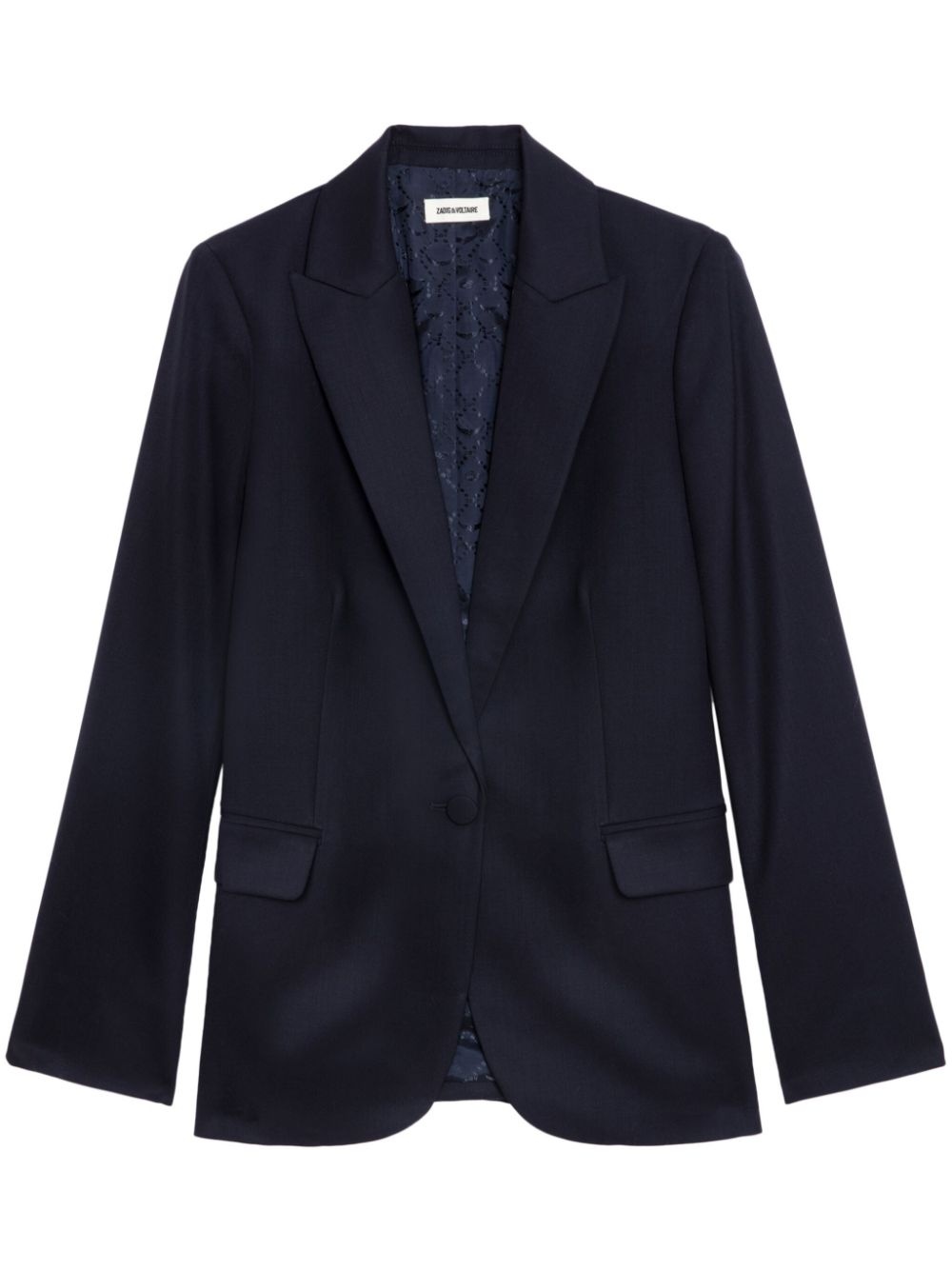 Valse blazer Highlights - Midnight blue - Front button fastening - Two side flap pockets - Buttoned cuffs - American rear vent Imported Composition Virgin Wool 100% Washing instructions Specialist Cleaning