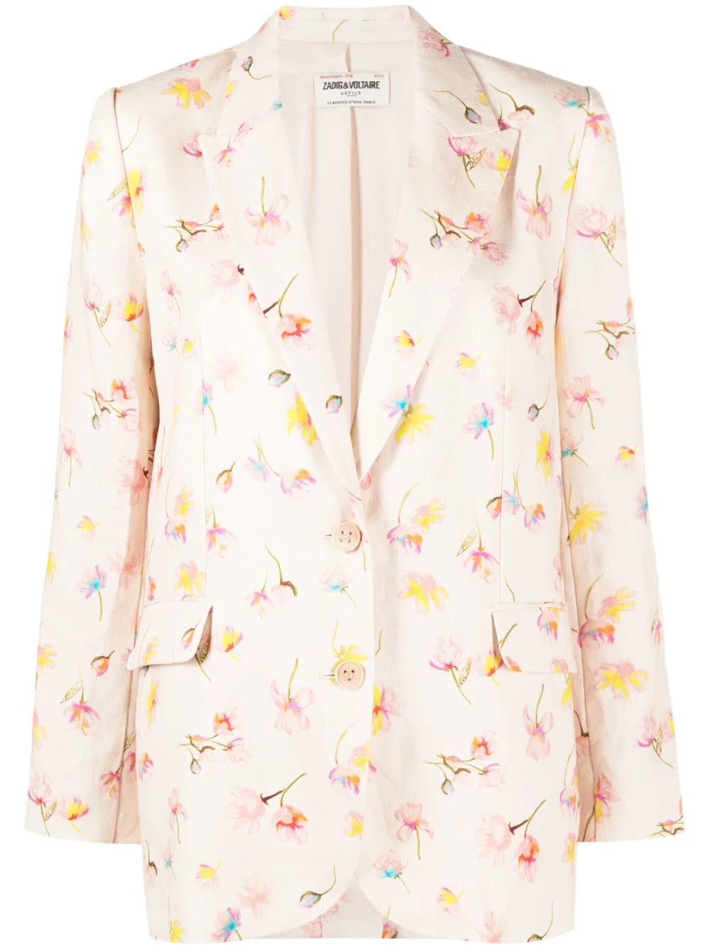 Vegy linen blazer With a single-breasted silhouette, this blazer from Zadig & Voltaire is adorned with all-over floral print and is enhanced with peak lapels. Highlights - Light beige - Linen - All-over floral print - Peak lapels - Front button fastening - Long sleeves - Two front flap pockets Imported Composition Outer: Linen/Flax 100% Lining: Viscose 100%, Polyester 100% SIZE & FIT Model measurements Height 5 ft 10 in(1.77 m) Bust/Chest 31.49 in(80 cm) Hips 36.22 in(92 cm) Waist 22.44 in(57 cm) FittingInformation Designed for a relaxed fit, this piece allows for comfort and movement when worn The internal shoulder pads offer a structured shape Made from a midweight non-stretch fabric, this piece offers minimal elasticity when worn This piece fits true to size – take your usual size
