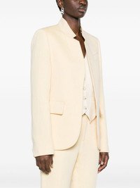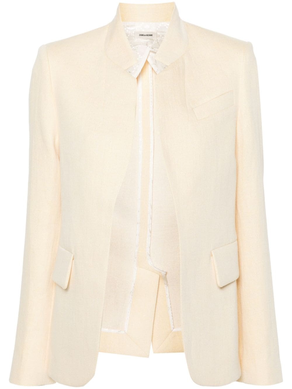 Very lurex single-breasted blazer Highlights - Yellow - Cotton blend - Lurex detailing - Stand-up collar - Open front - Shoulder pads - Long sleeves - Split cuffs - Chest welt pocket - Two front flap pockets - American rear vent - Straight hem - Partial lining Imported Composition Outer: Cotton 61%, Linen/Flax 36%, Polyester 2%, Polyamide 1% Lining: Viscose 100% SIZE & FIT Model measurements Height 5 ft 10 in(1.77 m) Bust/Chest 32.28 in(82 cm) Hips 35.03 in(89 cm) Waist 25.19 in(64 cm) FittingInformation Designed for a slim fit that sits just away from the body offering a close yet comfortable fit The internal shoulder pads offer a structured shape Made from a midweight non-stretch fabric This piece fits true to size – take your usual size Washing instructions Dry Clean Only