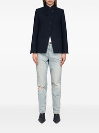 Verysa blazer Highlights - Navy blue - Mandarin collar - Button fastening - Wide sleeves - Straight hem Imported Composition Polyester 69%, Viscose 23%, Elastane 8% Washing instructions Dry Clean Only