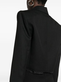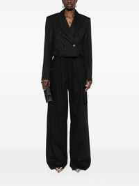 Vito double-breasted blazer Highlights - Black - Twill weave - Peak lapels - Double-breasted button fastening - Shoulder pads - Long sleeves - Buttoned cuffs - Chest welt pocket - Two front flap pockets - Internal jetted pocket - Cropped raw-cut hem - Full lining Imported Composition Polyester 55%, Virgin Wool 45% SIZE & FIT Model measurements Height 5 ft 10 in(1.77 m) Bust/Chest 32.28 in(82 cm) Hips 35.03 in(89 cm) Waist 25.19 in(64 cm) FittingInformation Designed for a boxy fit, intended for a loose fit throughout The internal shoulder pads offer a structured shape Made from a midweight non-stretch fabric This piece fits true to size – take your usual size