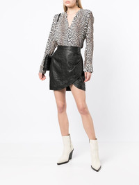 wrapped leather mini skirt black lambskin wrap design crinkled finish high-waisted rear zip fastening thigh-high Imported Composition Body: Lamb Skin 100% SIZE & FIT Model measurements Height 5 ft 10 in(1.77 m) Bust/Chest 31.49 in(80 cm) Hips 34.64 in(88 cm) Waist 23.62 in(60 cm) FittingInformation This piece fits true to size. We recommend you get your regular size Designed to be fitted at the waist, loose over the leg Made from supple hide Washing instructions Do Not Wash/Do Not Dry Clean