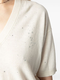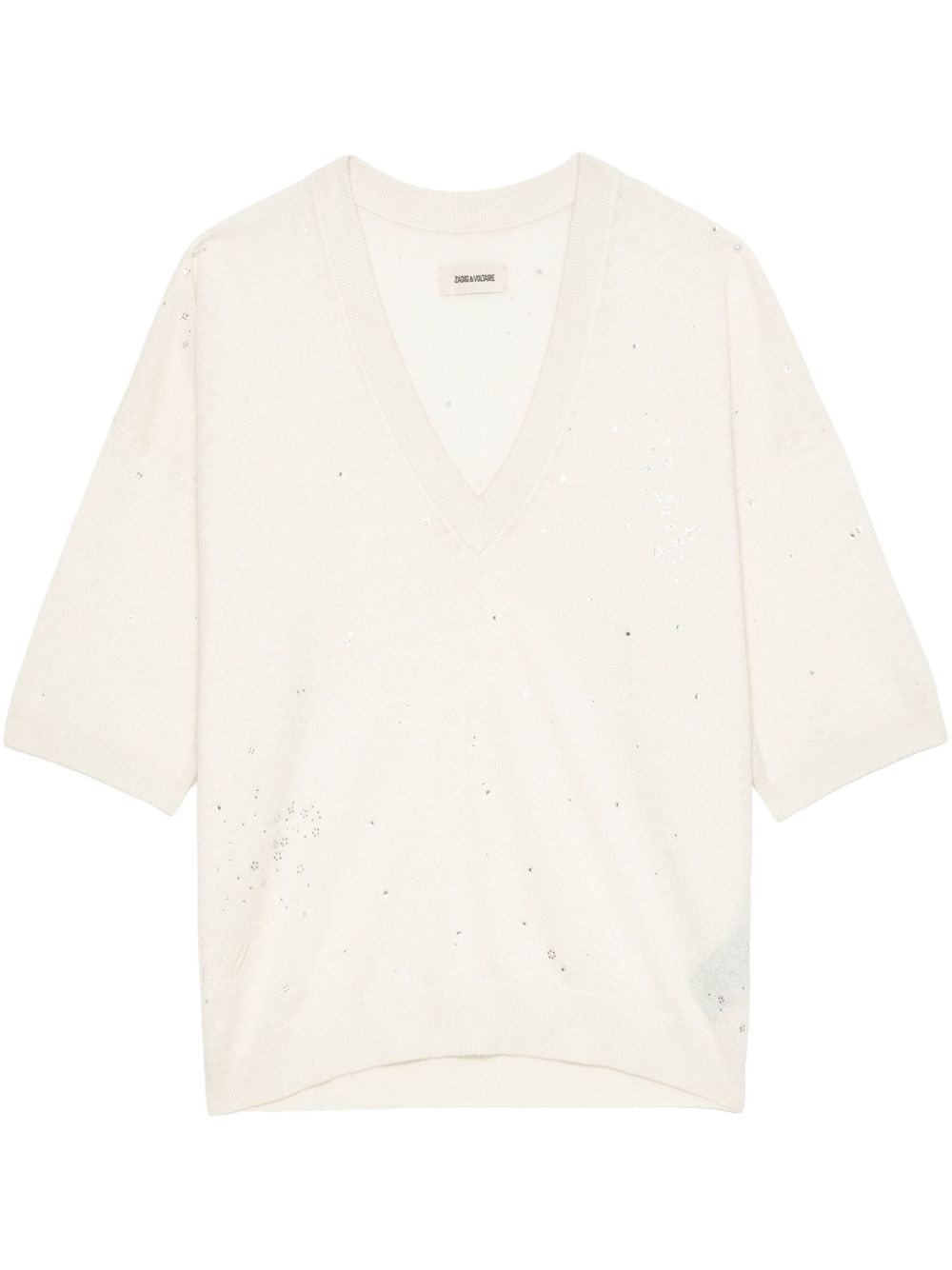 Wully top Highlights - White - V-neck - Short sleeves - Ribbed cuffs and hem - Rhinestone embellishment Imported Composition Linen/Flax 50%, Cotton 36%, Polyamide 14%