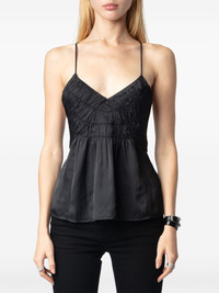 V-neck tank top Highlights - Black - Adjustable spaghetti straps - Pleat detailing Imported Composition Recycled Polyester 100%