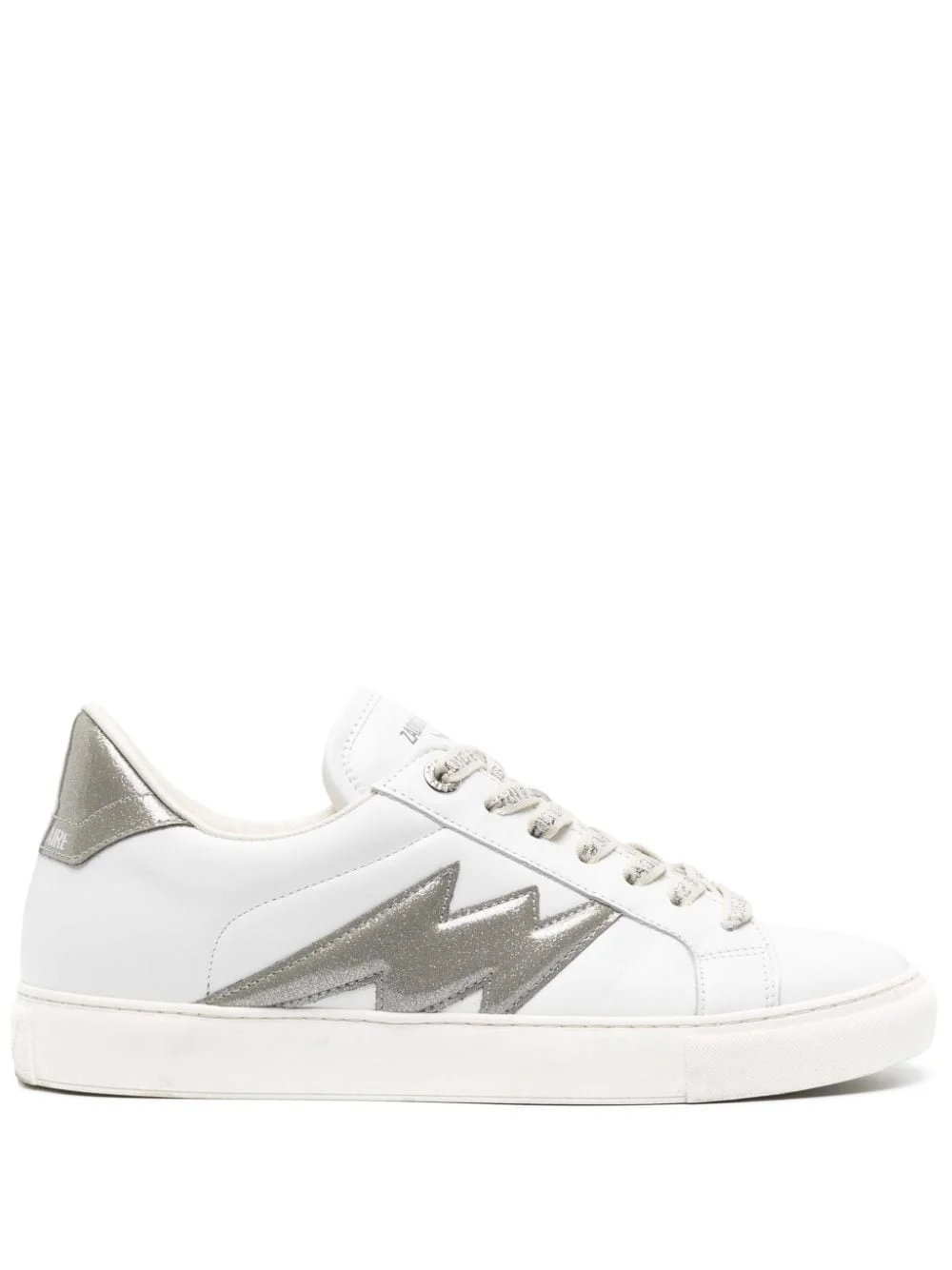ZV1747 La Flash leather sneakers Highlights - White/silver - Calf leather - Silver-tone hardware - Glitter detailing - Lightning bolt panel - Logo-print laces - Branded heel counter - Round toe - Front lace-up fastening - Flat rubber sole Imported Composition Outer: Calf Leather 100% Lining: Calf Leather 100% Sole: Rubber 100% SIZE & FIT Measurement Sole height 0.78 in(2 cm) HEEL 0.98 in(2.5 cm)