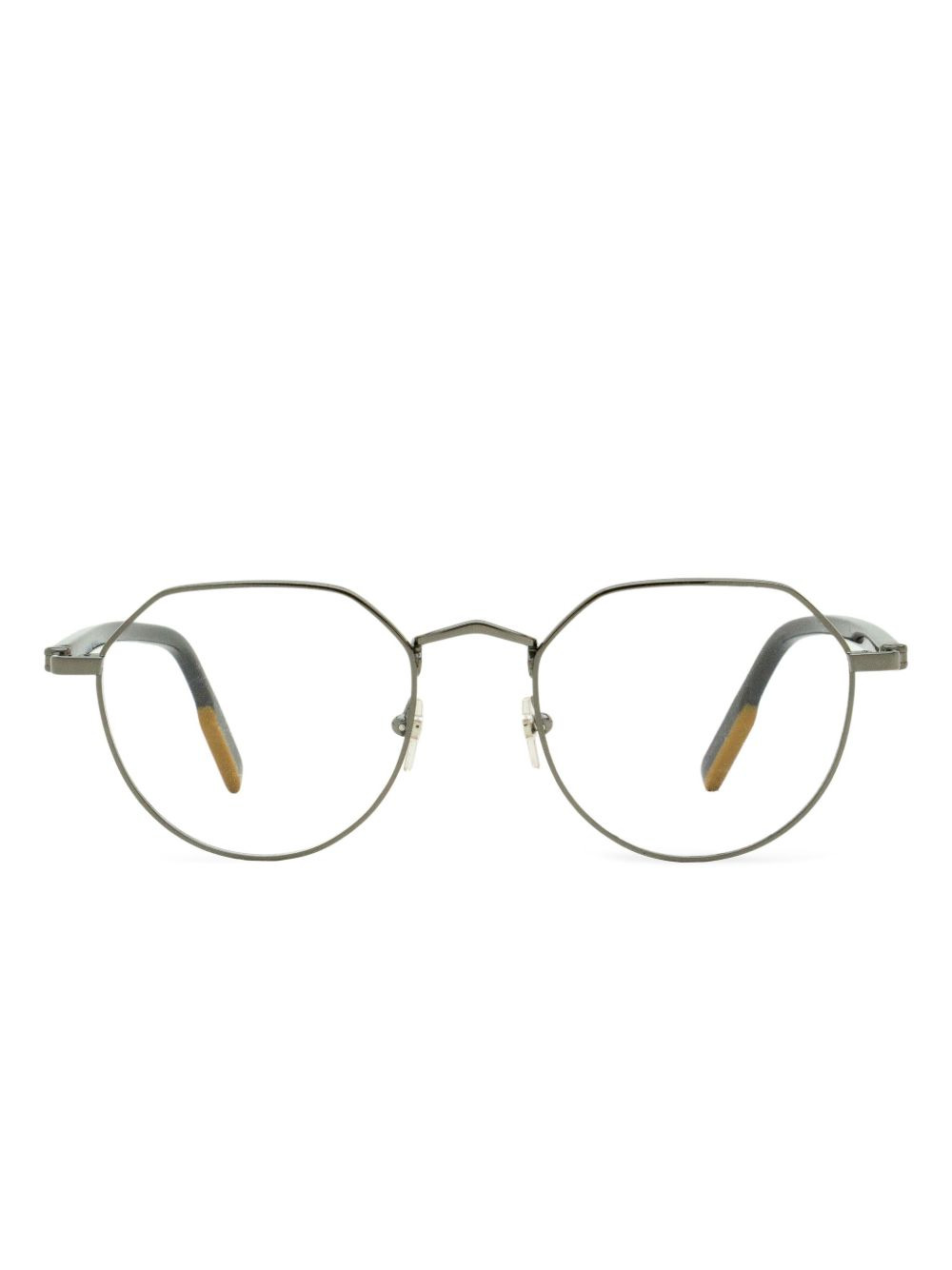 5238 optical frames Highlights - Silver - Geometric frame - Single bridge - Clear lenses - These glasses come with a protective case. - All glasses from farfetch are sold as non-prescription frames. Imported Composition Metal 100%, Plastic 100% SIZE & FIT Measurement Arm Length 5.7 in(14.5 cm) Bridge Width 0.74 in(1.9 cm) Lens Diameter 1.96 in(5 cm)