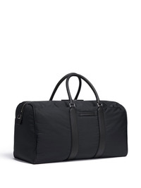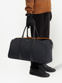 leather-trim holdall Highlights - Black - Recycled polyester - Silver-tone logo lettering - Panelled design - Two-way zip fastening - Two top handles - Single shoulder strap - Main compartment Imported Composition Outer: Recycled Polyester 100%, CALFSKIN 100% SIZE & FIT Measurement DEPTH 15.74 in(40 cm) HANDLE 9.84 in(25 cm) HEIGHT 9.84 in(25 cm) STRAP 24.4 in(62 cm) WIDTH 21.65 in(55 cm)