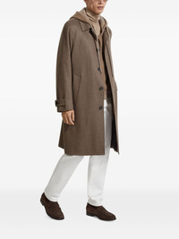 belted twill coat Highlights - Taupe brown - Twill weave - Belted waist - Buttoned cuffs - Notched lapel - Single breasted closure Made in Italy Composition Cashmere 100% Washing instructions Read Manufacturer Guidelines