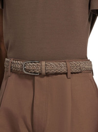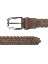 braided leather belt Highlights - Brown - Braided leather - Gunmetal buckle - Rectangular buckle Made in Italy Composition Metal 100%, Calf Leather 100% SIZE & FIT Measurement WIDTH 1.25 in(3.2 cm)