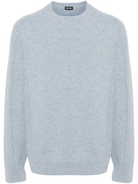 brushed fine-knit jumper Highlights - Blue-grey - Wool-cashmere blend - Fine knit - Brushed finish - Crew neck - Drop shoulder - Long sleeves - Ribbed cuffs and hem Made in Italy Composition Wool 70%, Cashmere 30% SIZE & FIT Model measurements Height 6 ft 2 in(1.87 m) Bust/Chest 36.41 in(92.5 cm) Hips 37 in(94 cm) Waist 29.52 in(75 cm) FittingInformation Designed for a regular fit, offering a comfortable loose fit throughout the body Made with a midweight knit, this piece offers some stretch This piece fits true to size – take your usual size