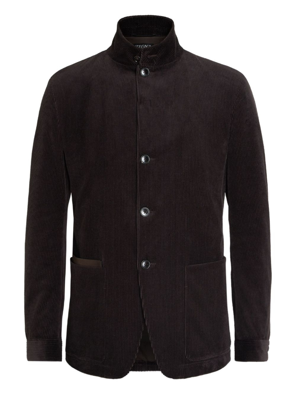 buttoned corduroy jacket Highlights - Dark brown - Corduroy texture - Stand collar - Button fastening - Front patch pockets - Buttoned cuffs Made In Italy Composition Cotton 91%, Cashmere 8%, Elastane 1% Washing instructions Read Manufacturer Guidelines