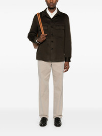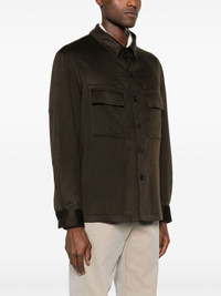 cashmere shirt Highlights - Dark brown - Cashmere - Felted finish - Classic collar - Long sleeves - Buttoned-cuff sleeves - Two chest flap pockets - Short side slits - Straight hem - Front button fastening Made in Italy Composition Outer: Cashmere 100% Lining: Polyester 100% SIZE & FIT Model measurements Height 6 ft 2 in(1.88 m) Bust/Chest 36.61 in(93 cm) Hips 35.82 in(91 cm) Waist 27.95 in(71 cm) Measurement CHEST 49.6 in(126 cm) SLEEVE LENGTH 36.22 in(92 cm) LENGTH 29.92 in(76 cm) WAIST 48.03 in(122 cm) Shoulder Width 20.47 in(52 cm) FittingInformation Designed for a regular fit, allowing for a comfortably loose fit throughout the body Made from a midweight non-stretch fabric This piece fits true to size – take your usual size