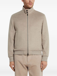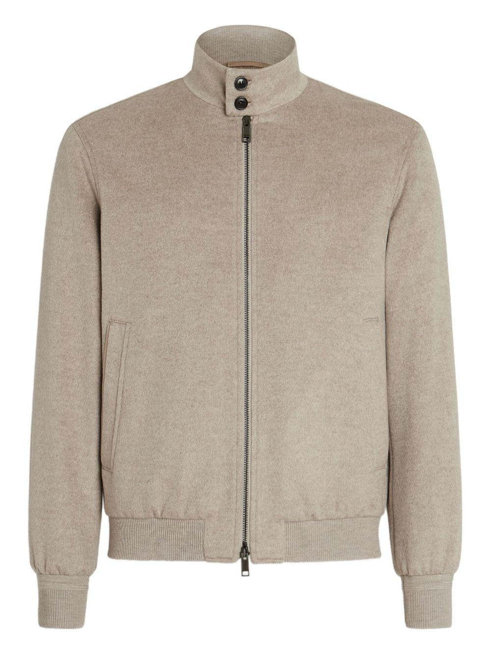 cashmere zip-fastening bomber jacket Highlights - Beige - Cashmere wool fabric - Zip fastening - Ribbed hem - High neck - Button fastening collar - Welt pockets Made in Italy Composition Cashmere 100% Washing instructions Read Manufacturer Guidelines