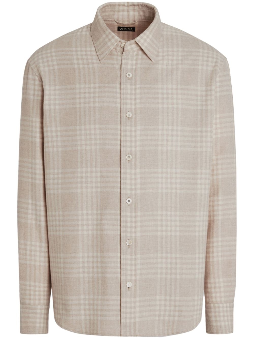 check-pattern shirt Highlights - Beige - Cotton - Check pattern - Front button fastening - Cutaway collar - Long sleeves - Buttoned cuffs - Curved hem Imported Composition Cotton 100%