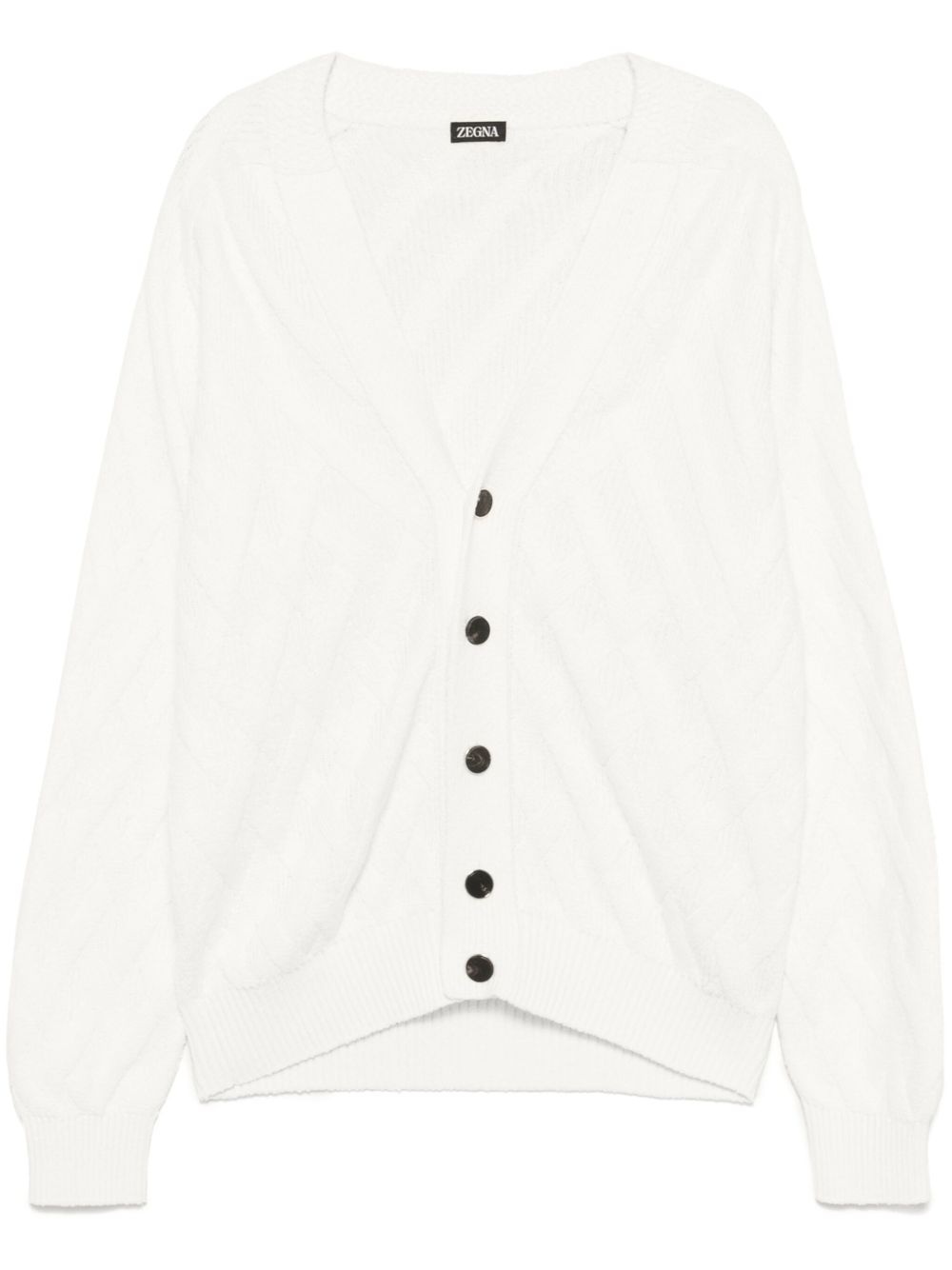 chunky-knit cardigan Highlights - White - Front button fastening - V-neck - Long sleeves - Ribbed-knit edge Made in Italy Composition Cotton 100% SIZE & FIT Model measurements Height 6 ft 1 in(1.86 m) Bust/Chest 36.61 in(93 cm) Hips 37 in(94 cm) Waist 28.74 in(73 cm) FittingInformation Designed for a regular fit, offering a comfortable loose fit throughout the body Made with a midweight knit, this piece offers some stretch