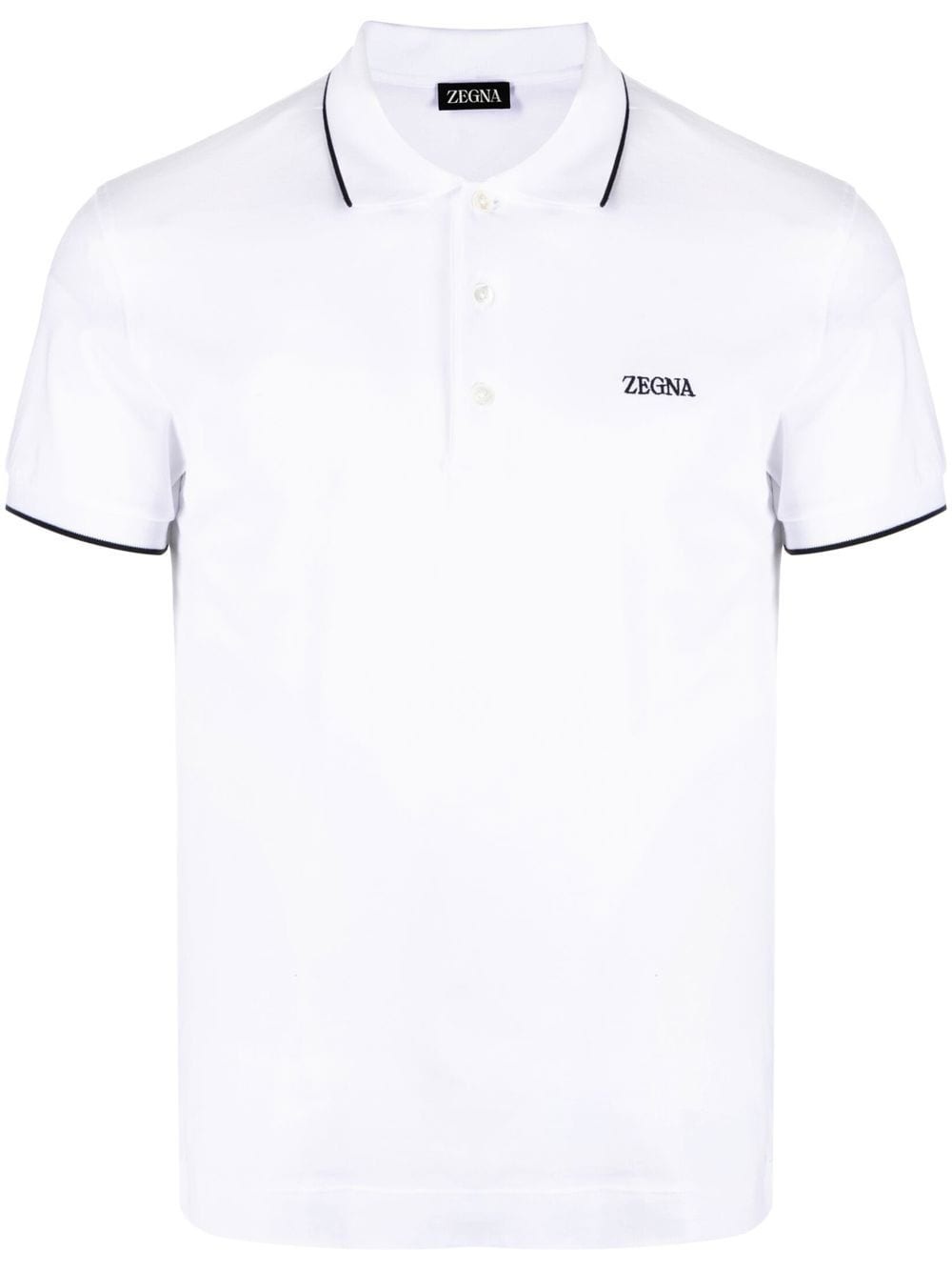 cotton polo shirt Highlights - Optical white - Stretch-cotton - Contrasting trim - Embroidered logo at the chest - Polo collar - Short front button fastening - Short sleeves - Straight hem Imported Composition Cotton 95%, Elastane 5% SIZE & FIT Model measurements Height 6 ft 1 in(1.85 m) Bust/Chest 35.82 in(91 cm) Hips 37.79 in(96 cm) Waist 29.13 in(74 cm) Measurement CHEST 42.51 in(108 cm)