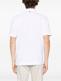 cotton polo shirt Highlights - White - Front button placket - Polo collar - Chest patch pocket - Short side slits Imported Composition Cotton 100%, Calf Leather 100% SIZE & FIT Model measurements Height 6 ft 2 in(1.87 m) Bust/Chest 38.97 in(99 cm) Hips 37.99 in(96.5 cm) Waist 29.52 in(75 cm) FittingInformation Designed for a regular fit, this polo shirt offers a comfortable loose fit throughout the body Made from a lightweight non-stretch fabric, this piece offers minimal elasticity when worn