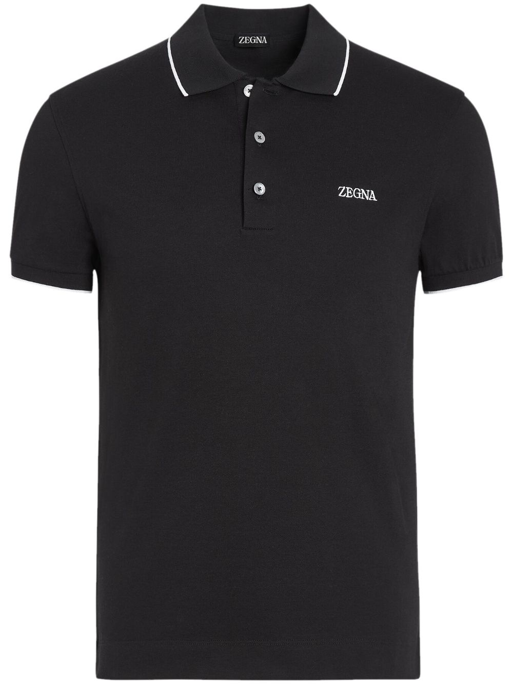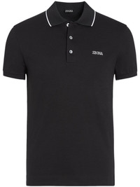 cotton polo shirt Highlights - Black - Stretch-cotton - Embroidered logo at the chest - Striped edge - Polo collar - Front button placket - Short sleeves - Straight hem Imported Composition Cotton 95%, Spandex/Elastane 5% SIZE & FIT Measurement CHEST 37.79 in(96 cm)