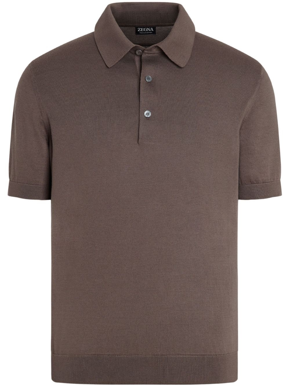 cotton polo shirt Highlights - Taupe brown - Front button placket - Polo collar - Ribbed cuffs and hem Made in Italy Composition Cotton 100% SIZE & FIT FittingInformation Designed for a regular fit, offering a comfortable loose fit throughout the body