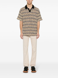 cotton straight-leg trousers Highlights - Light beige - Stretch-cotton - Belt loops at the waist - Classic five pockets - Logo patch to the rear - Internal logo tag - Straight leg - Front button and zip fastening Imported Composition Lining: Cotton 100% Outer: Cotton 98%, Spandex/Elastane 2% Calf Leather 100% SIZE & FIT Model measurements Height 6 ft 1 in(1.86 m) Bust/Chest 36.61 in(93 cm) Hips 37 in(94 cm) Waist 28.74 in(73 cm) FittingInformation Designed for a slim fit, offering a comfortable fit that sits just away from the leg Made from a midweight stretch fabric, this piece offers elasticity and flexibility when worn This piece fits true to size – take your usual size