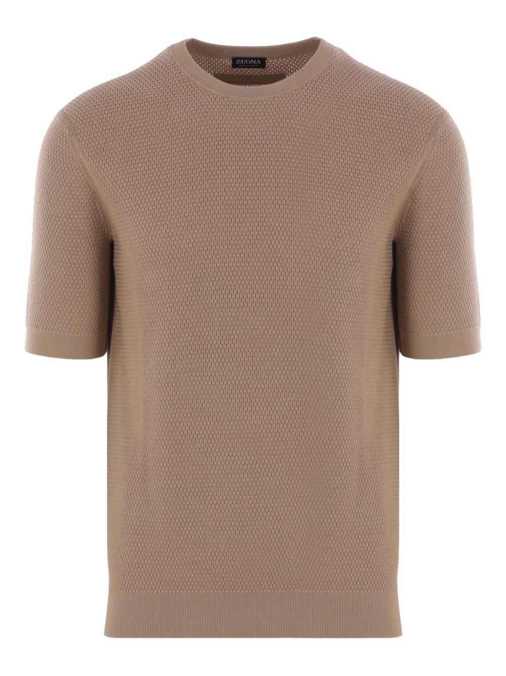 cotton T-shirt Highlights - Almond beige - Ribbed trim - Crew neck - Short sleeves Made in Italy Composition Cotton 100%