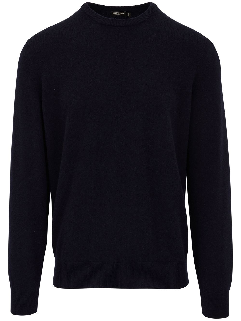 crew neck cashmere jumper navy blue cashmere fine knit ribbed trim long sleeves straight hem Made in Italy Composition Cashmere 100%