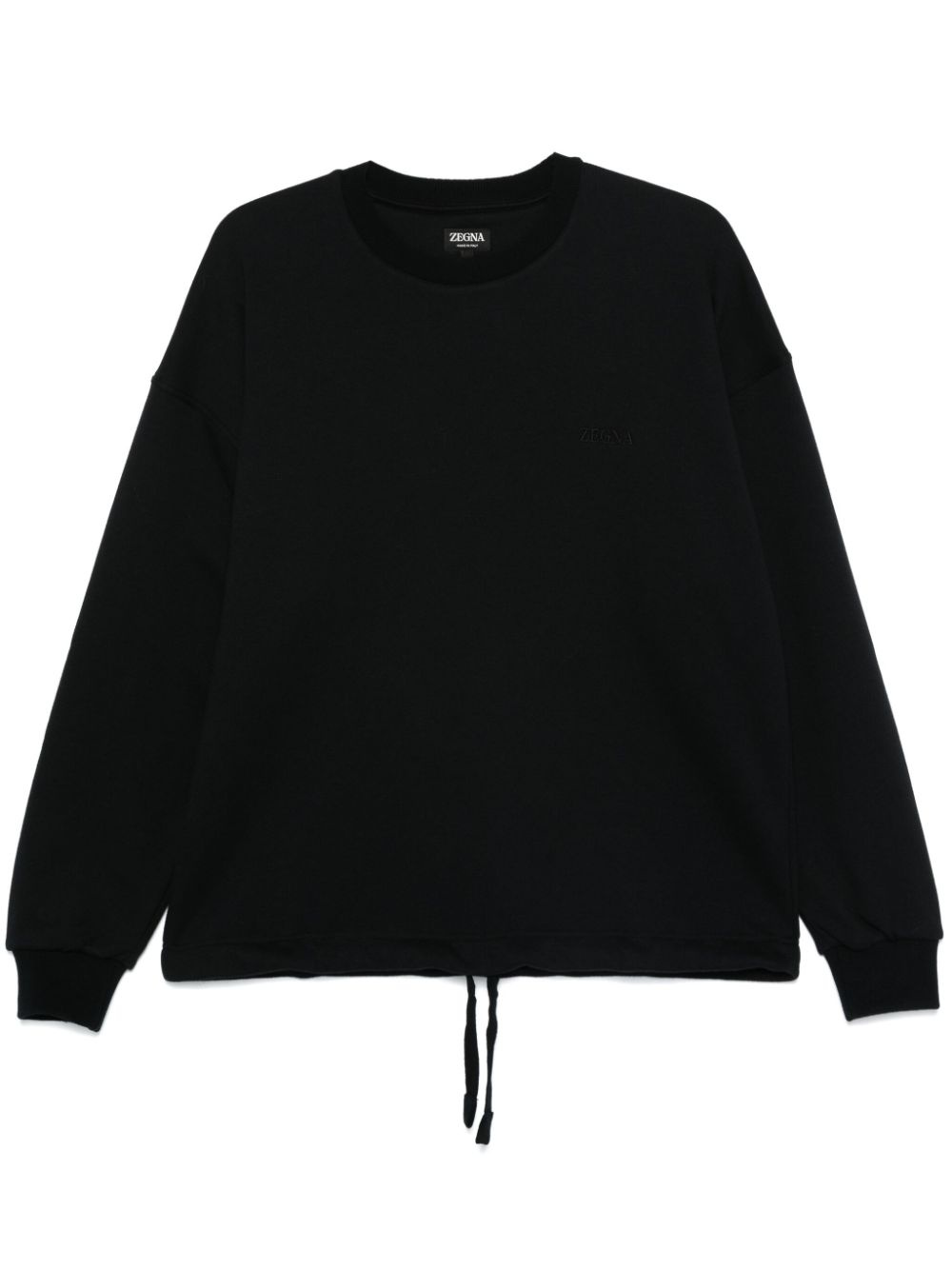 crew-neck sweatshirt Highlights - Black - Cotton blend - Jersey texture - Crew neck - Drop shoulder - Long sleeves - Ribbed cuffs - Drawstring hem Made in Italy Composition Cotton 93%, Polyamide 7% SIZE & FIT Model measurements Height 6 ft 2 in(1.87 m) Bust/Chest 35.03 in(89 cm) Hips 34.64 in(88 cm) Waist 25.98 in(66 cm) FittingInformation Designed to be unstructured, offering a loose fit throughout The adjustable drawstring means that you can adjust this piece’s fit to suit your comfort and preference Made from a midweight non-stretch fabric, this piece offers minimal elasticity when worn