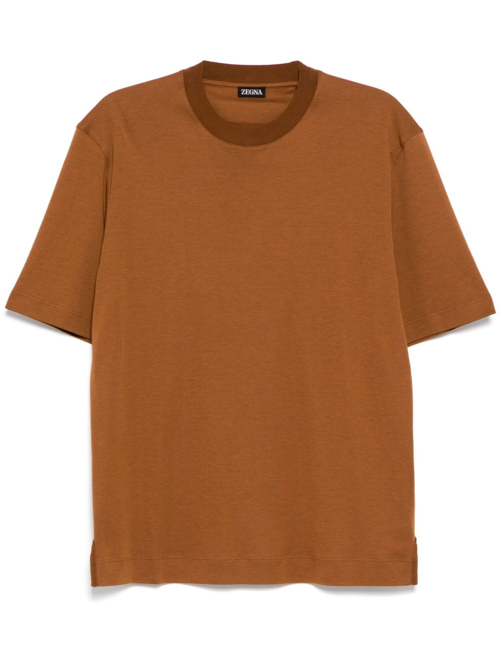 crew-neck T-shirt Highlights - Brown - Crew neck - Short sleeves - Short sleeves - Straight hem Made in Italy Composition Cotton 70%, Silk 30% SIZE & FIT Model measurements Height 6 ft 2 in(1.88 m) Bust/Chest 34.25 in(87 cm) Hips 34.64 in(88 cm) Waist 26.77 in(68 cm) FittingInformation Designed for a regular fit allowing for a comfortably loose fit throughout the body Made from a midweight non-stretch fabric, this piece offers minimal elasticity when worn