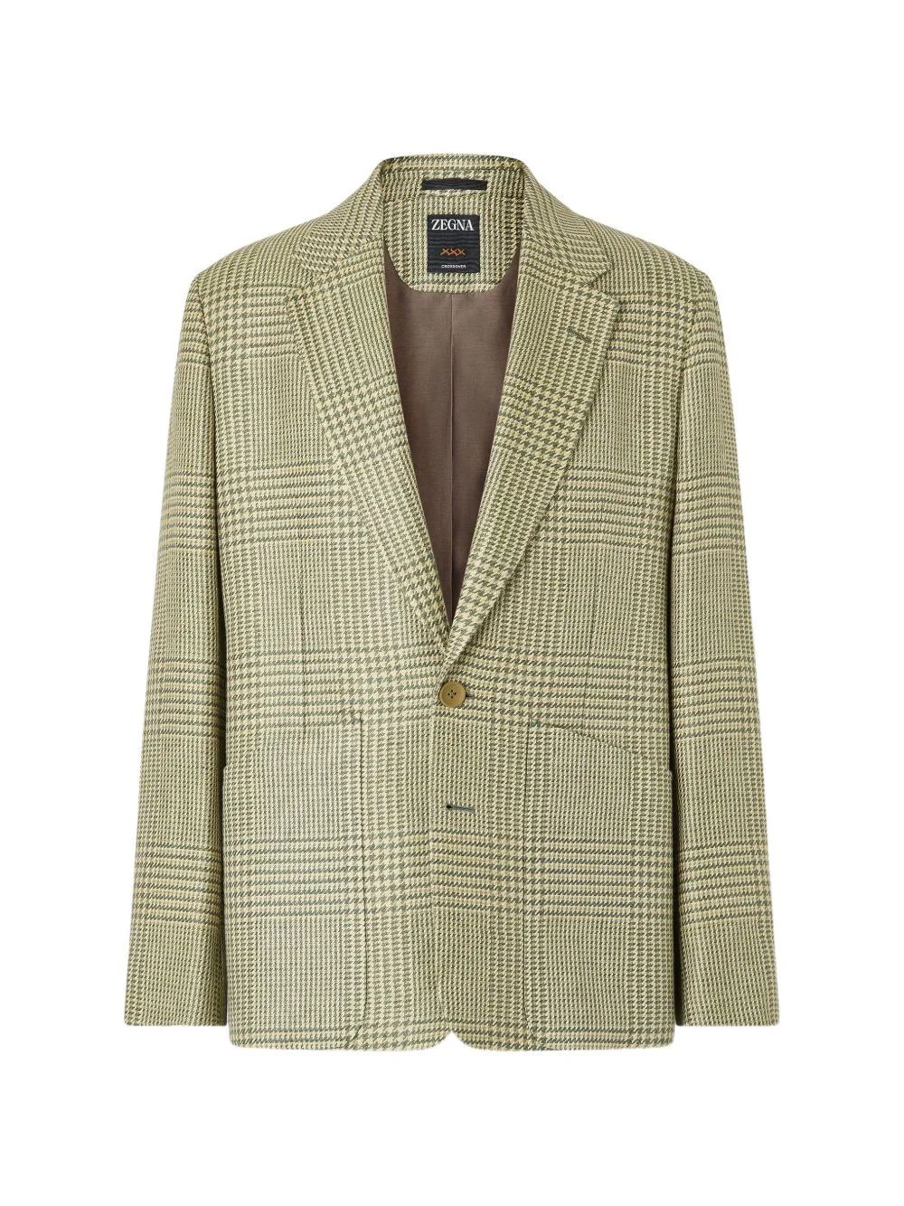crossover jacket Highlights - Olive green - Check pattern - Wool - Tailoring jacket - Single vent - Notch lapels - Washed fabric - Prince of wales pattern - Two button closure Made in Italy Composition Body: Linen/Flax 74%, Wool 24%, Silk 2% Washing instructions Read Manufacturer Guidelines