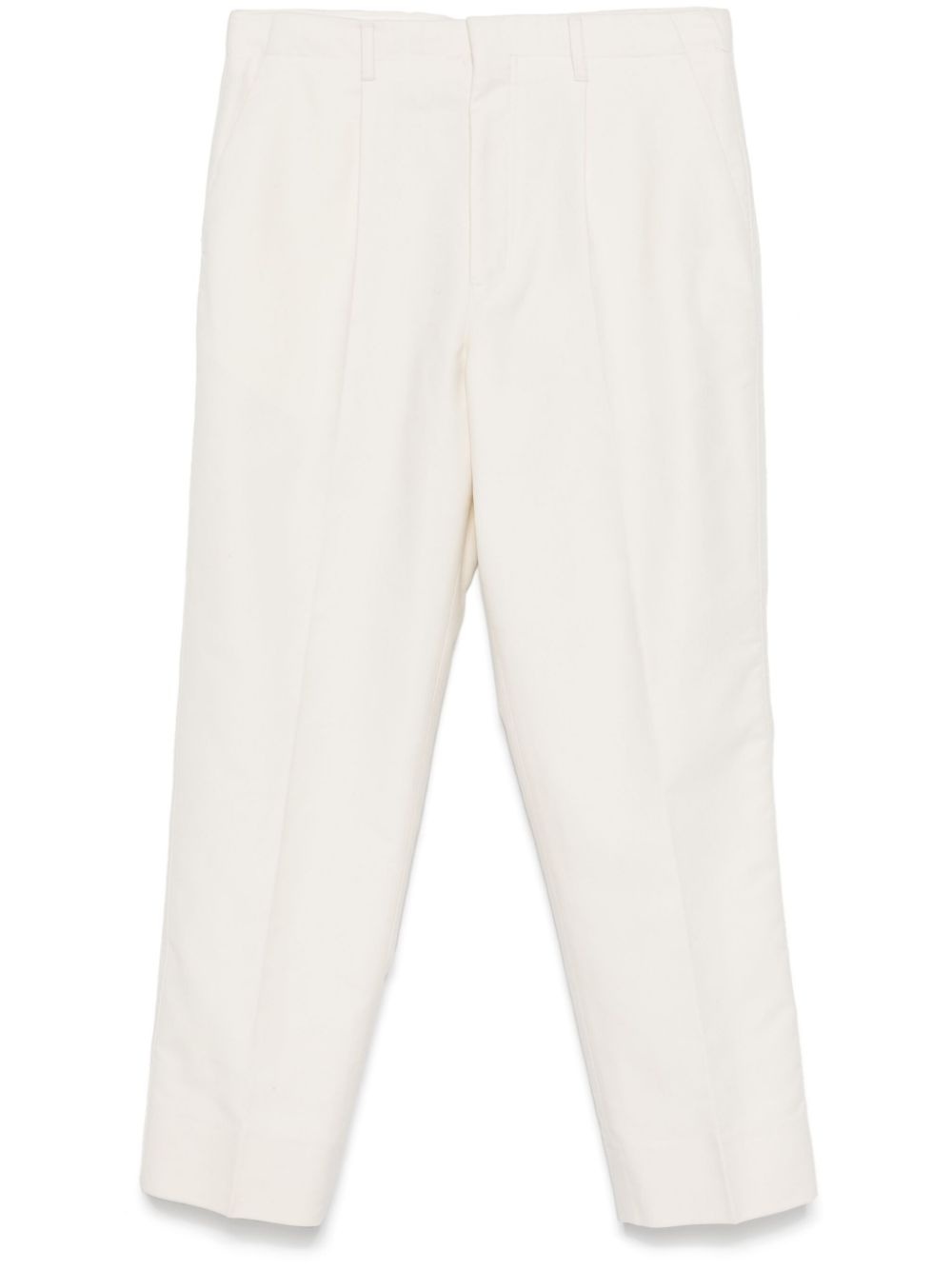 flannel trousers Highlights - White - Hook and zip fly fastening - Two diagonal pockets to the sides - Two rear flap pockets - Pleat detailing Imported Composition Cotton 91%, Cashmere 9% SIZE & FIT Model measurements Height 6 ft 0 in(1.84 m) Bust/Chest 35.82 in(91 cm) Hips 37 in(94 cm) Waist 28.34 in(72 cm) FittingInformation Designed for a tapered leg, offering a loose unrestricted fit over the leg with a closer fit towards the ankle Made from a midweight non-stretch fabric