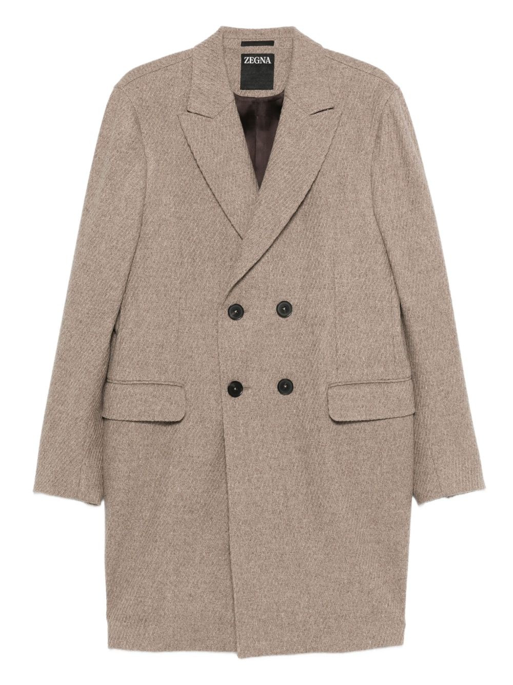 flap-pocket double-breasted coat Highlights - Beige - Double-breasted - Notched lapels - Front button fastening - Front flap pockets - Long sleeves Imported Composition Fabric 100% Washing instructions Read Manufacturer Guidelines
