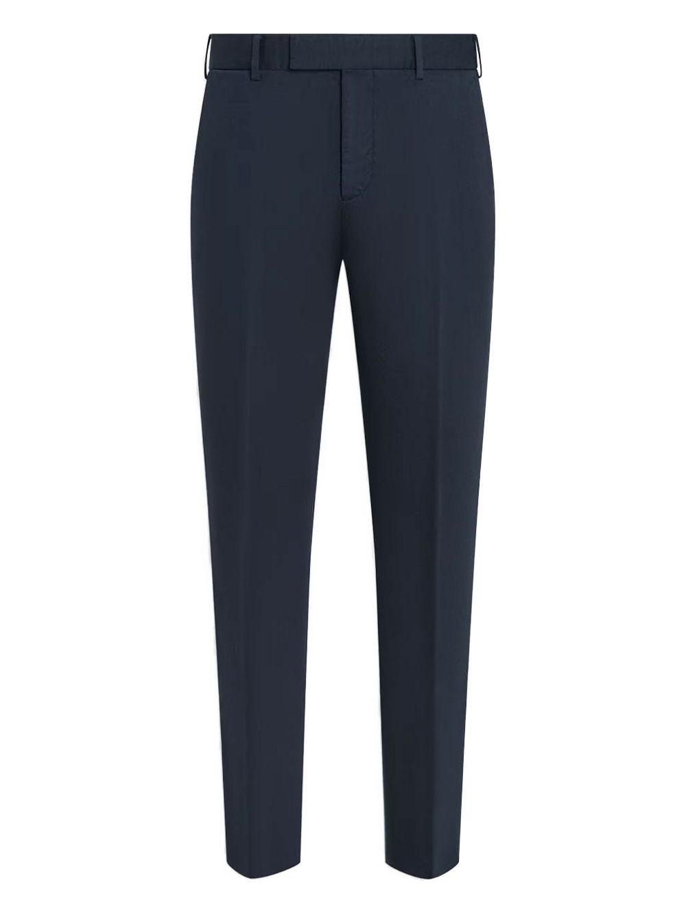 flat-front tapered trousers Highlights - Dark blue - Flat front - Straight leg - Mid-rise - Front button and zip fastening Made in Italy Composition Fabric 100% Washing instructions Read Manufacturer Guidelines