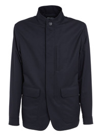 high-neck patch-pocket jacket Highlights - Navy blue - High neck - Button fastening - Patch pockets - Welt pockets - Long sleeves Made in Italy Composition Lining: Wool 100% Outer: Polyester 100%, Calf Leather 100% Washing instructions Read Manufacturer Guidelines