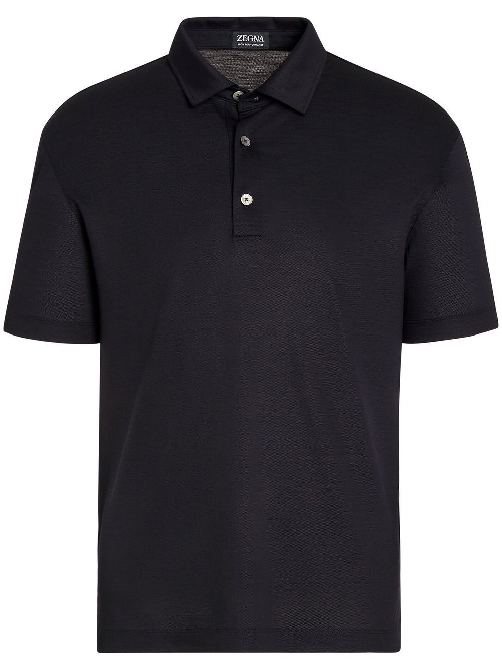 High Performance wool polo shirt Highlights - Navy blue - Wool - Polo collar - Front button placket - Short sleeves - Straight hem Imported Composition Wool 100% Washing instructions Dry Clean Only