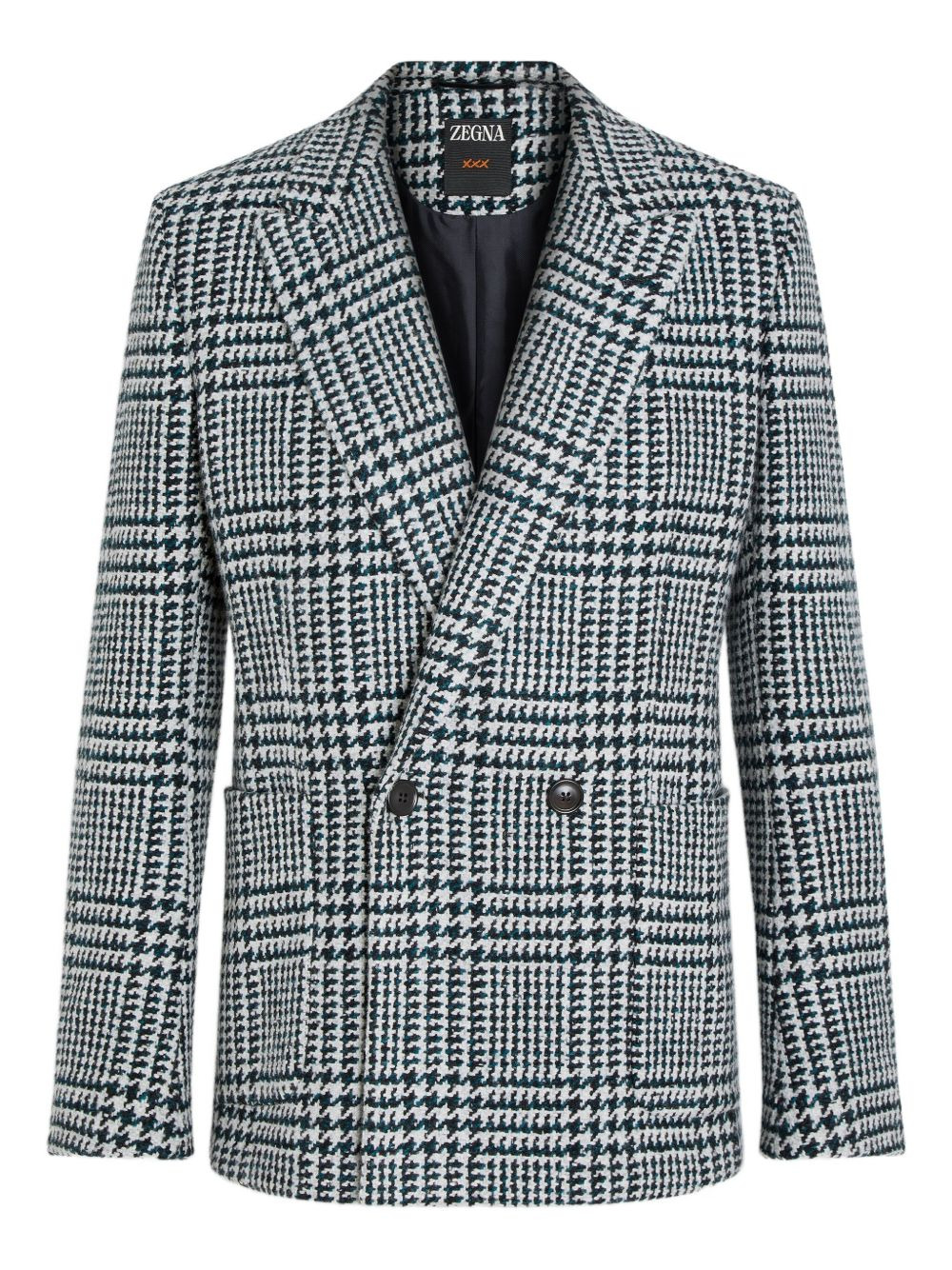 houndstooth double-breasted blazer Highlights - Black and white - Houndstooth pattern - Double-breasted closure - Notched lapels - Patch pockets Made in Italy Composition Wool 90%, Cashmere 10% Washing instructions Read Manufacturer Guidelines