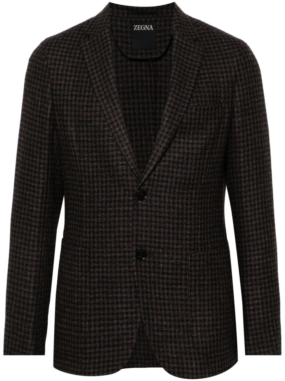 houndstooth-pattern blazer Highlights - Navy blue/chocolate brown - Linen-wool blend - Houndstooth pattern - Front button fastening - Notched lapels - Long sleeves with buttoned cuffs - Chest welt pocket - Two side patch pockets - English rear vents - Two internal patch pockets - Partial lining - Straight hem Made in Italy Composition Outer: Wool 66%, Linen/Flax 31%, Cashmere 3% Lining: Viscose 100% SIZE & FIT Model measurements Height 6 ft 2 in(1.87 m) Bust/Chest 37.79 in(96 cm) Hips 37.79 in(96 cm) Waist 30.31 in(77 cm) FittingInformation Designed for a slim fit, offering a comfortable fit that sits just away from the body The vented hem offers movement at the rear Made from a midweight non-stretch fabric