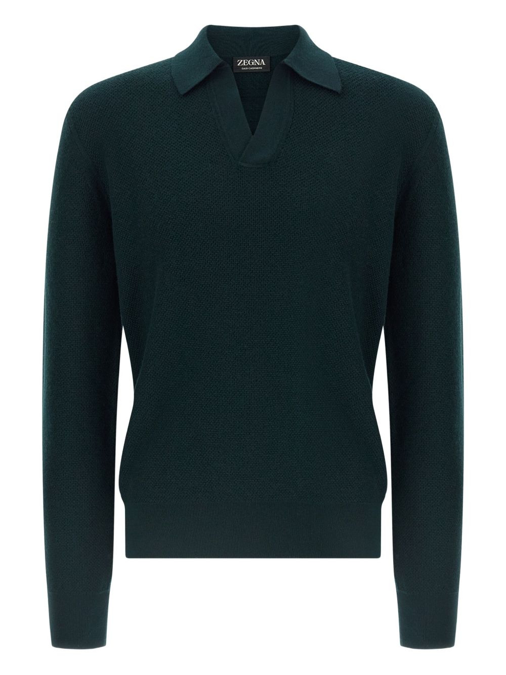 jacquard oasis T-shirt Highlights - Green - V-neck - Collar - Long sleeves - Cuffs - Dropped shoulder Made in Italy Composition Cashmere 100%