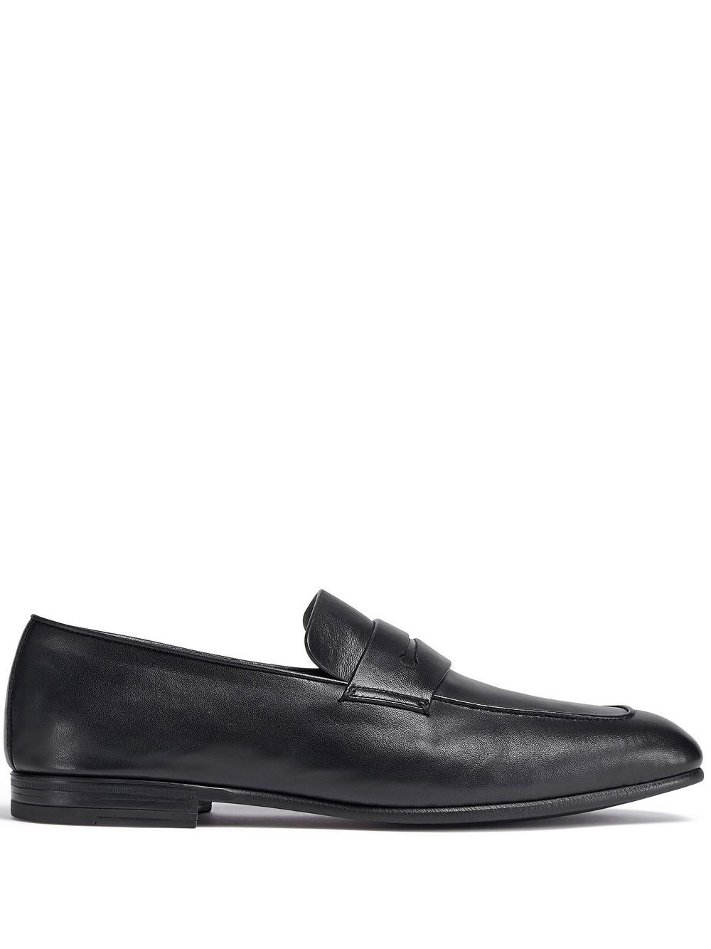 L'Asola leather loafers black lambskin square toe penny slot branded insole flat sole Made in Italy Composition Outer: Lambskin 100% Sole: Rubber 100% Lining: Lambskin 100%